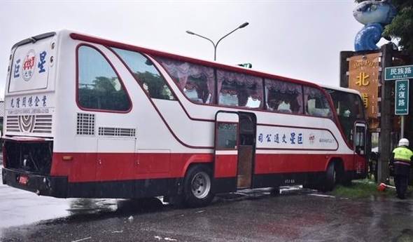 根據民眾指出,15日12時30分,載著大陸游客的游覽車,自光復路北往南行經省道臺九線北埔路段往花蓮方向時,因當時雨勢滂沱,游覽車疑似為閃避由民族路西向東的一輛小客車,造成游覽車閃避不及自撞地標。不過詳細事故原因正由新城警方調查中。(中國臺灣網 李寧)
