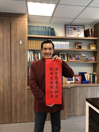 30日,馬英九公布狗年的正式春聯(lián),“海宇熙春金雞去,乾坤生意駿犬來(lái)”,向眾人祝福狗年旺旺,財(cái)源滾滾,臺(tái)灣風(fēng)調(diào)雨順,字跡也再度獲得網(wǎng)友好評(píng)。