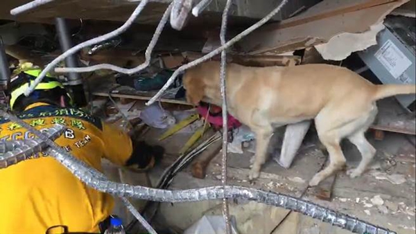 接近中午,搜救人員用生命探測器,偵測到在柜臺任職大夜班的2名工作人員,37歲周志軒、20歲梁書瑋發出求救訊號,搜救人員把握黃金救援時間,成功救出梁書瑋,加緊腳步救援周志軒,在13時28分由搜救犬“鐵雄”進入局限空間,發現待救者周男呼吸心跳停止,仍在極力搶救。(中國臺灣網 張麗媛)