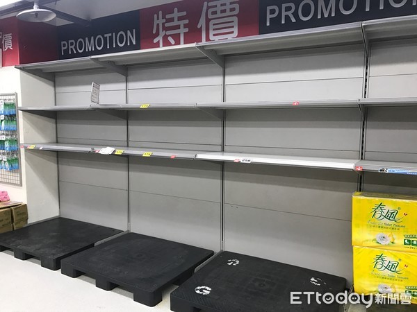 臺灣地區賣場衛生紙被搶購一空 。(圖片來源:臺灣“東森新聞云”)