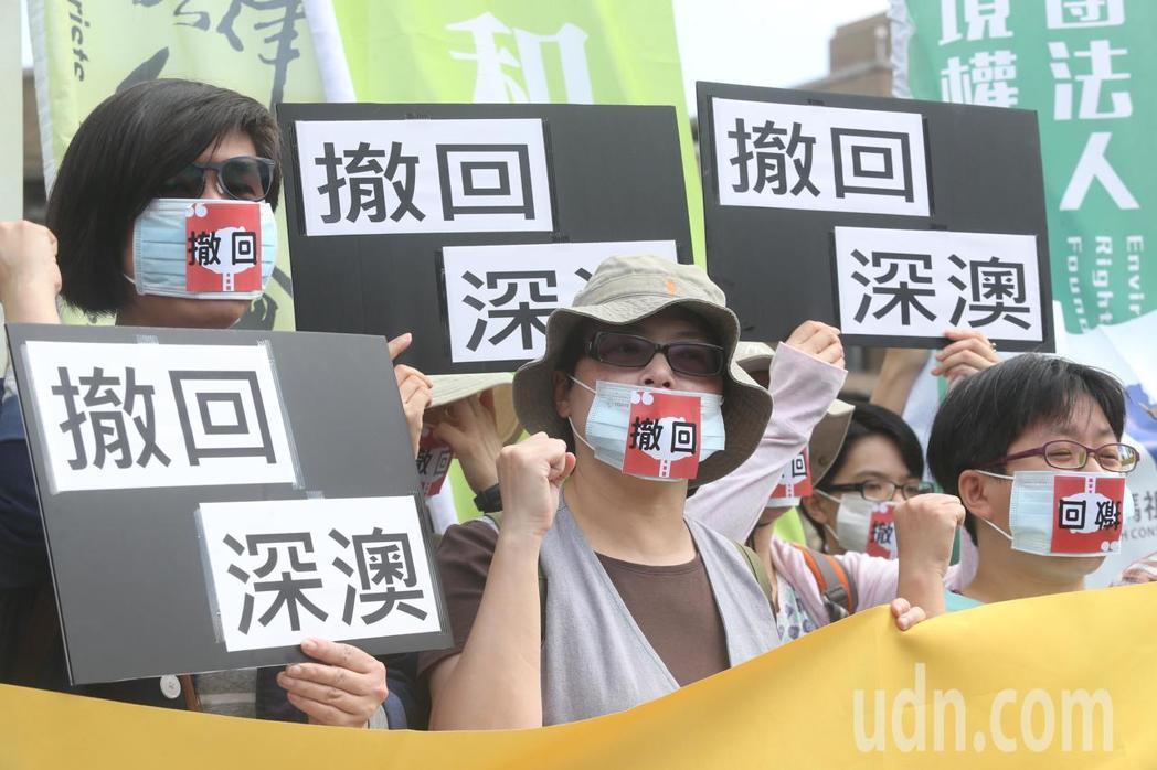 撤回深澳聯(lián)署已破五萬人,環(huán)團(tuán)日前到“行政院”前陳情,要求撤回深澳案。(圖片來源:臺灣《聯(lián)合報》)