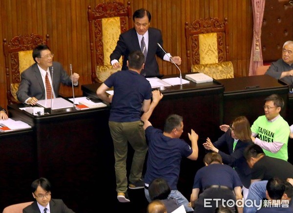 中國臺灣網4月20日訊 據臺灣“東森新聞云”報道,臺當局“立法院”20日又爆戰事!為拼軍人年改“付委”,民進黨團一早7點就至議場集結“捍衛主席臺”,國民黨團則進攻發言臺杯葛,雙方爆發沖突,全案混亂中仍順利進入“委員會”審查階段。然而會中國國民黨“立委”楊鎮浯、林為洲欲跳上主席臺時反遭蘇嘉全推落,藍營痛批“輸家拳”“暴力阿全”,要求蘇嘉全出面認錯道歉,并將提案送“紀律委員會”。