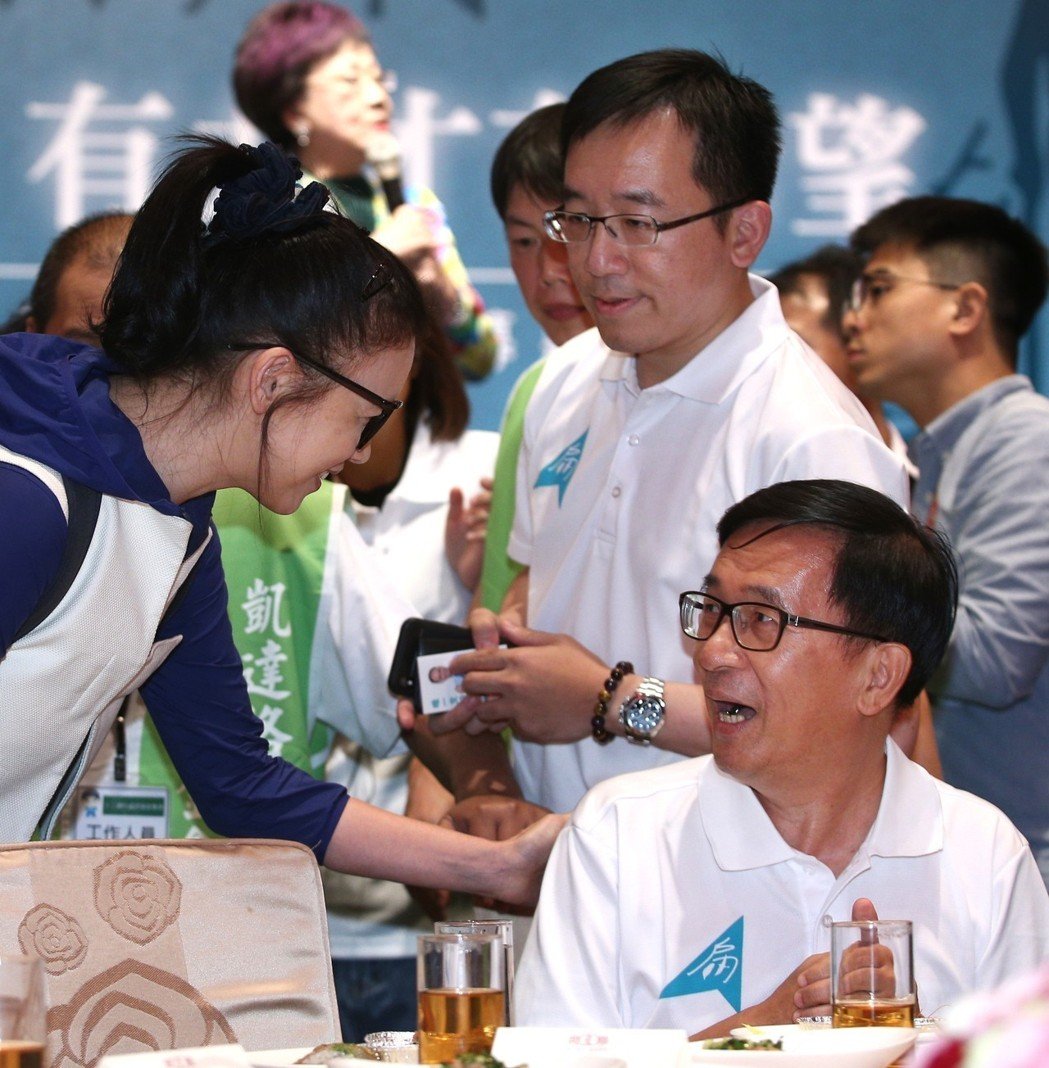 中國臺灣網5月5日 因貪污入獄的臺灣地區前領導人陳水扁目前仍在保外就醫。據臺灣《聯合報》報道,他昨天出席凱達格蘭基金會募款餐會,以站在舞臺前階梯的“上階不上臺”,及不“義賣”但介紹“義賣品”的形式,反擊臺中監獄的對其下達的“四不”禁令(不許上臺、不許演講、不許談政治、不許受訪)及新曾的“三不”(不許錄像談話、不許主持義賣、不許在臺北過夜)。