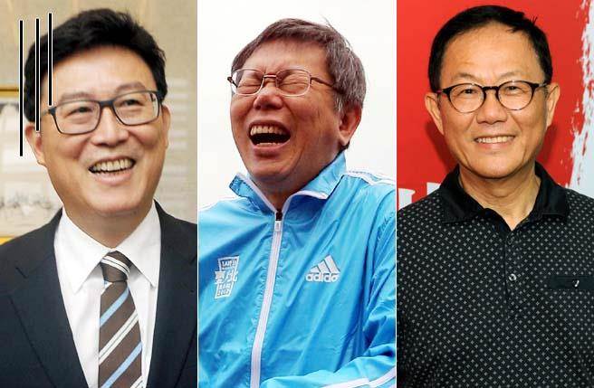 民進黨“立委”姚文智(左)、現任臺北市長柯文哲(中)、國民黨臺北市長參選人丁守中(右)。(圖片來源:臺灣《中時電子報》)