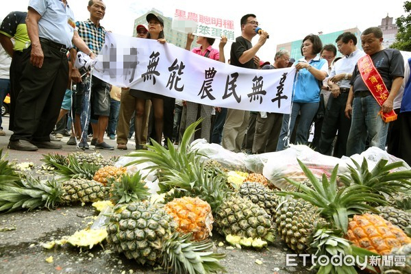 據報道,菠蘿價崩,目前南部產地收購價竟剩不到5元(新臺幣,下同),雖然“農委會”已提出補助拯救產地價,但仍難平怒火。果農號召300人北上怒喊“賴清德下臺、林聰賢下臺”,一路從“立法院”游行至“行政院”砸菠蘿抗議。