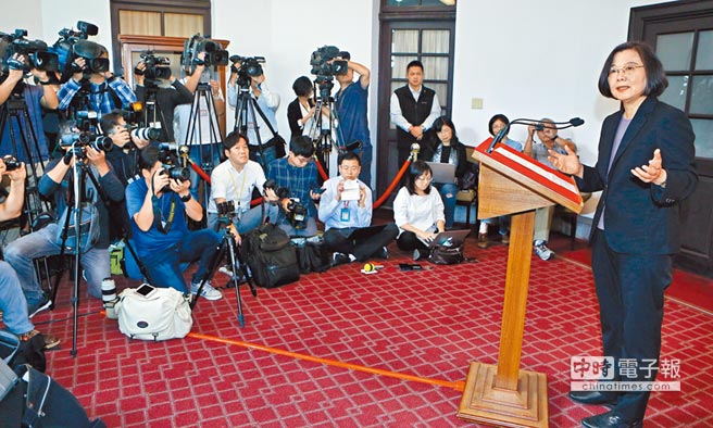 蔡英文6日在蔡辦進行首度“回廊談話”。(圖片來源:臺灣“中時電子報”)
