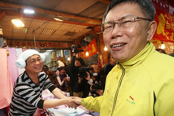 臺北市長柯文哲昨晚(23日)接受電視臺專訪時指出,2018民進黨大敗就兩個理由,分別是“白綠分手”和“韓流”。圖為柯文哲昨日下午到臺北迪化商圈走街、推廣店家商品、發紅包。(圖片來源:臺灣《聯合報》)