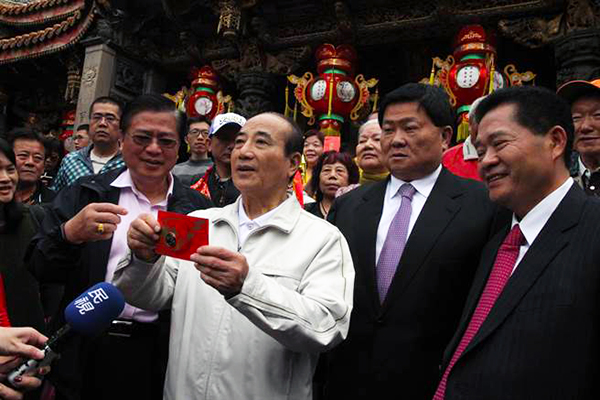 臺灣前“立法院長”王金平到大甲鎮(zhèn)瀾宮發(fā)送“時來運(yùn)轉(zhuǎn)”小紅包。(圖片來源:中時電子報)