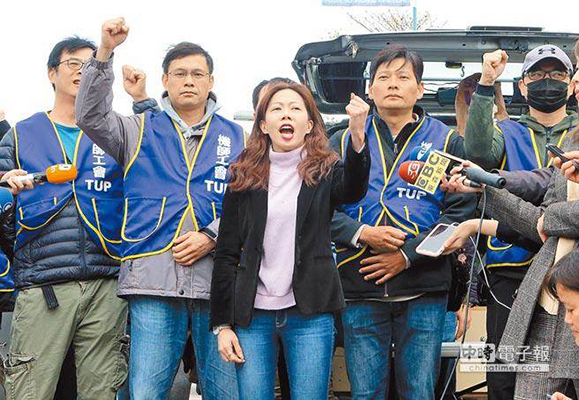 臺灣華航罷工機師抗議。(圖片來源:臺灣“中時電子報”)