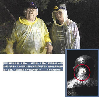 “獨(dú)派”成員郭志剛(上圖左)、林廷穎(上圖右)破壞陽明山公園的蔣介石銅像,士林地院27日判決公訴不受理,被臺(tái)灣“高等法院”打臉發(fā)回更審。(圖片來源:臺(tái)灣“中時(shí)電子報(bào)”)