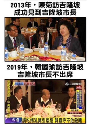 中國臺灣網(wǎng)2月26日訊 據(jù)臺灣“中時電子報”報道,高雄市長韓國瑜出訪馬來西亞搶訂單,行程中許多馬來西亞官員都臨時喊卡,輿論推測是蔡英文民進黨當局打壓。國民黨草協(xié)聯(lián)盟發(fā)起人李正皓指出,綠營的粉絲團一張照片,民進黨“卡韓”的證據(jù)不小心露餡!
