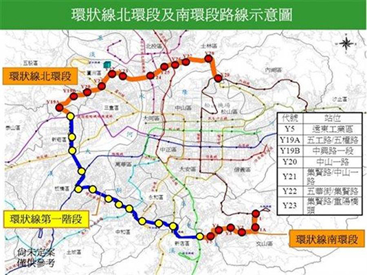 臺北捷運(yùn)環(huán)狀線第二階段:北環(huán)段及南環(huán)段。(圖片取自臺媒)