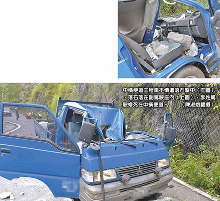臺中橫便道落巨石砸中工程車 駕駛員頭部被擊送醫(yī)后死亡