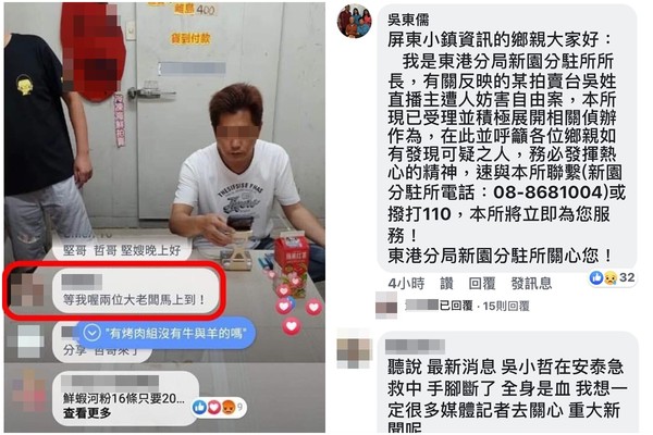 臺灣屏東常在網絡上直播拍賣的吳小哲27日晚間直播到一半時,遭人押走并被打斷手腳棄置公園。(圖片取自臺媒)