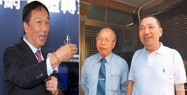 鴻海集團創辦人郭臺銘(左)、侯友宜二哥侯明鋒(中)、新北市長侯友宜(右)。