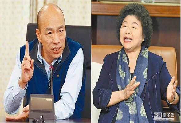 韓國瑜,陳菊。(圖片來源:臺灣“中時電子報”)