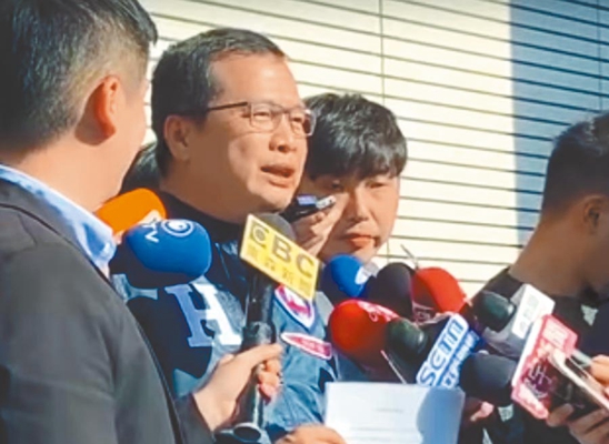 羅智強在臺灣“三立電視臺”門口質問蔡英文。(圖片取自臺媒)