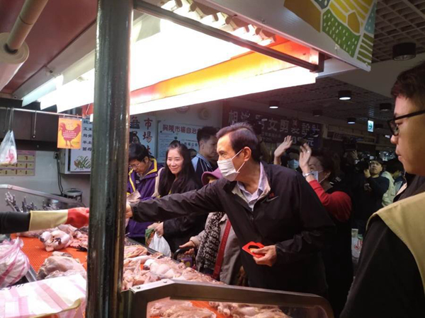 馬英九到住家附近的興隆市場發春聯。(圖片來源:臺灣“中時電子報”)