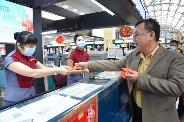 澎湖縣長賴峰偉視察澎湖機(jī)場(chǎng)運(yùn)輸情況,發(fā)紅包感謝值班人員辛苦。(圖片取自臺(tái)媒)
