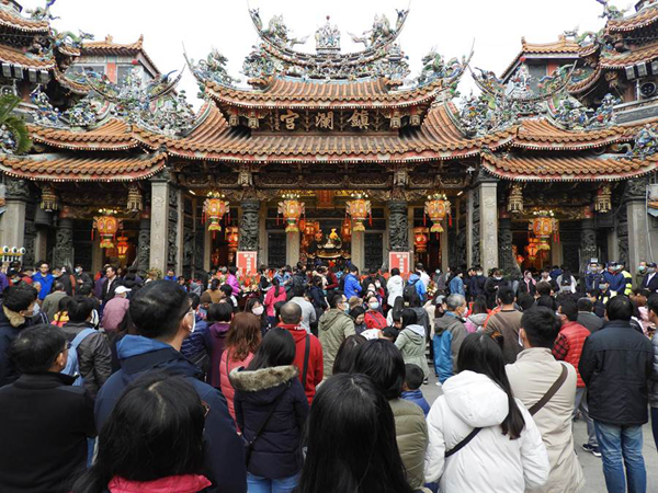 大甲鎮瀾宮前廣場人山人海,等待馬英九到來。(圖片來源:臺灣“中時電子報”)