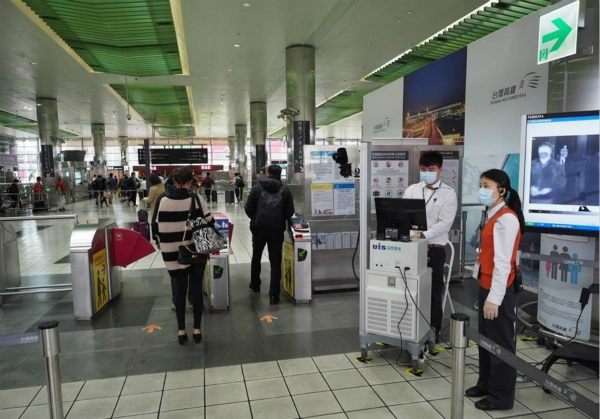 臺灣桃園市高鐵站設置紅外線熱顯像儀。(圖片來源:臺灣“中時電子報”)