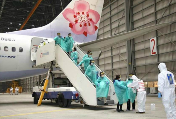 圖為第二批滯留湖北的361名臺胞返臺場景。(圖片來源:臺灣“中時電子報”)