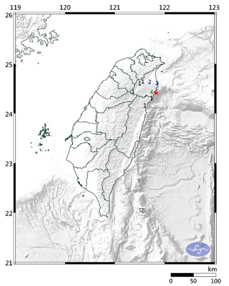 臺灣宜蘭近海發生3.5級地震 最大震度4級