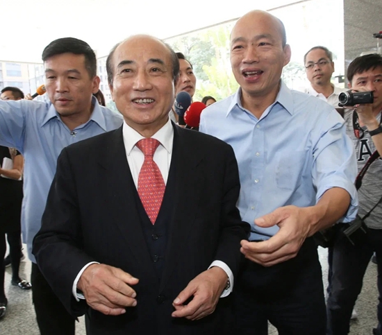 王金平與韓國(guó)瑜。(圖片來(lái)源:臺(tái)灣《聯(lián)合報(bào)》)