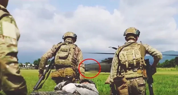 據報道,這部時長44秒的影片公布在美軍特戰第一總隊官方網站與社交媒體上,開頭有近10秒,采用其所轄特戰分隊在臺灣與臺陸軍特戰部隊共同執行室內攻堅、戰傷救護、人員撤離等訓練畫面,多名美軍教官搭配一名身著臺軍迷彩服的特戰官兵,在臺軍營舍中模擬進行戰術搜索、攻堅,并由黑鷹直升機撤離。片中直升機尾桁上“陸軍”字樣在片中一閃而過,顯示美軍位置在臺灣。