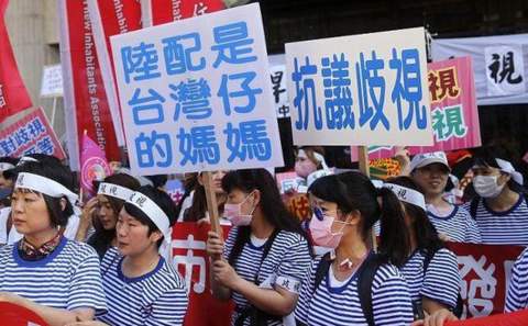臺灣大陸配偶抗議照。(圖片來源于網(wǎng)絡(luò))