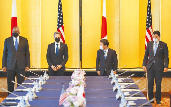 中國臺灣網3月22日訊 日本《共同社》21日報道稱,在美國拜登政府上臺后首次于16日舉行的日美防長面對面會談中,雙方對臺海可能發生的“不測事態”表達關切,還確認在臺灣突發事態之際將密切合作,宣稱大陸若武力“攻臺”、美軍馳援臺灣,日本自衛隊將考慮提供協助。日本防衛大臣岸信夫與美國國防部長奧斯汀出席了會談。