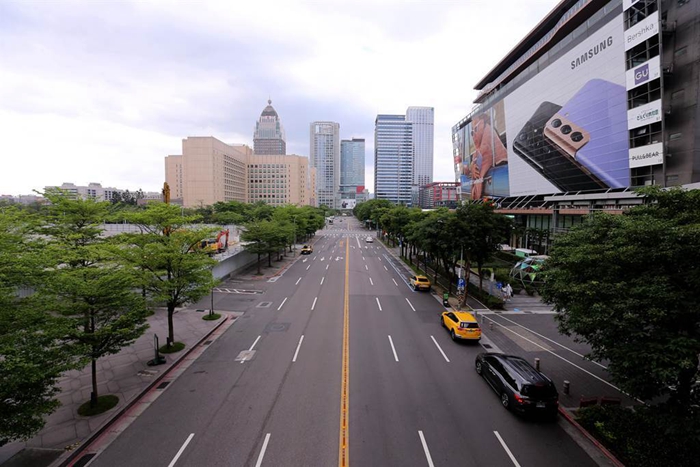 臺北信義區百貨商場及電影院不見逛街人潮,連平時壅塞的信義、基隆路口車輛都很稀少。(圖片來源:臺灣“中時新聞網”)