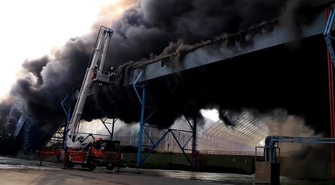 臺中火力發電廠疑似輸送帶起火 消防隊搶救中。(圖片來自臺媒)