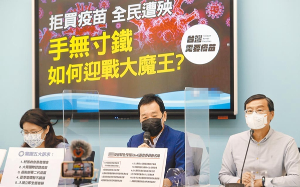 中國國民黨黨團28日召開“拒買疫苗,全民遭殃”記者會。(圖片來源:臺灣“中時新聞網”)