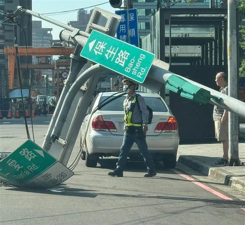 新北永和交通標志桿傾倒險砸人車 現(xiàn)場畫面曝光