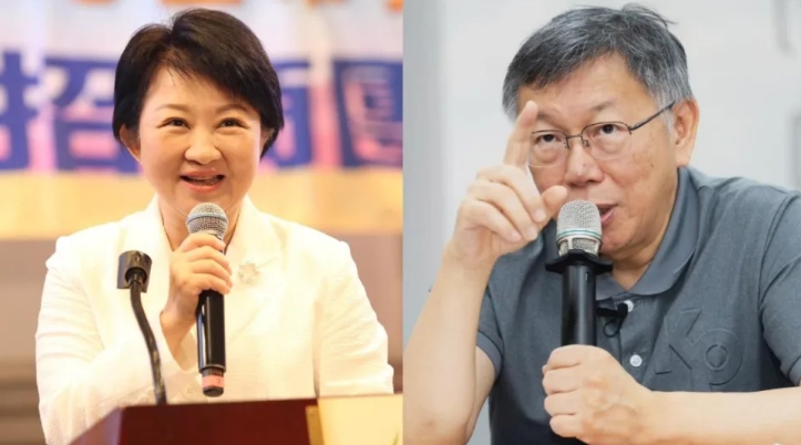 中國(guó)國(guó)民黨臺(tái)中市長(zhǎng)盧秀燕(左)、民眾黨主席柯文哲(右)。(圖片來源:臺(tái)灣TVBS)