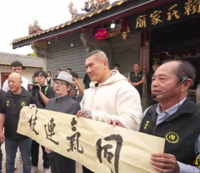 “館長”3日抵達福建漳州平和縣心田村后,受到賴氏宗親會及民眾熱烈歡迎。