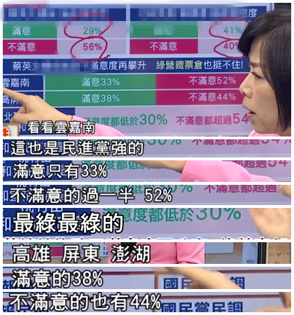 大方向的形勢是這個樣子,具體看民調,還有更厲害的。原本“綠油油”的縣市,現在也開始對蔡英文倒胃口了。
