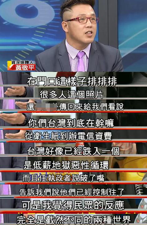 經濟的不景氣不僅讓臺灣民眾荷包縮水以致底氣不足,也讓他們在面對物價上漲時產生了嚴重的恐慌心理,飽嘗低薪之苦的島民在薪資停滯與民生物資不斷飛漲的現實中,心理落差也在不斷加大。