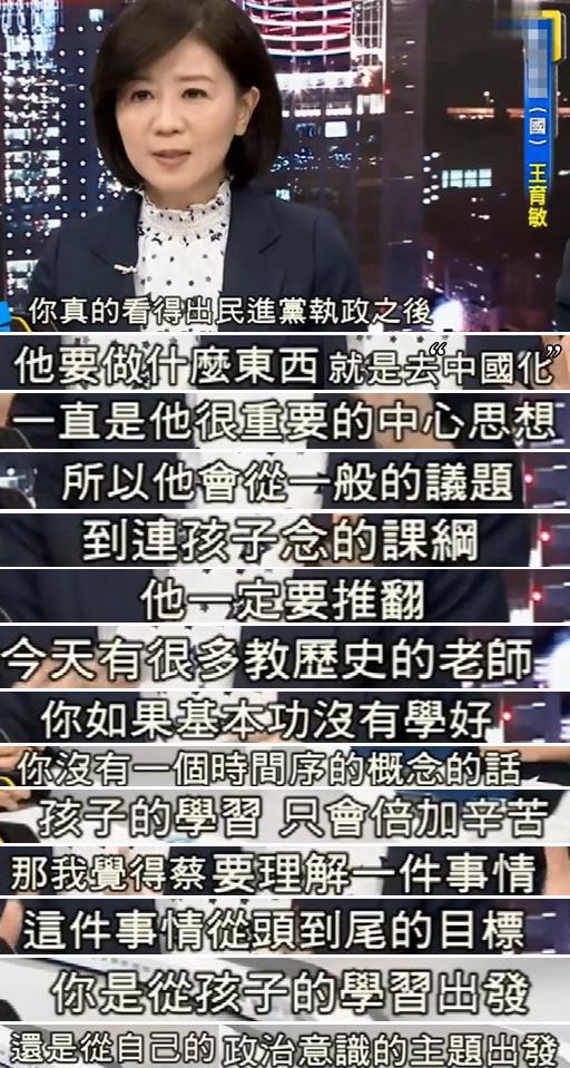 我們都知道,教育之所以重要,就因?yàn)樗麑τ谝粋人價值觀、人生觀、世界觀等的塑造和影響起著難以忽視的作用,而在我們汲取的知識中又有相當(dāng)一部分來源于學(xué)校的書本,黃智賢以舊課綱、現(xiàn)行課綱及未來課綱做對比,表示自己做學(xué)生時學(xué)的“中國史叫本國史”,所以她從始至終都堅定地認(rèn)為“自己是個中國人”、“臺灣人就是中國人”!