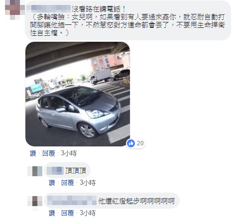 但萬萬沒想到有部分網友看完后竟反酸吳男,“綠燈就狂沖嘛,再沖啊,哈哈哈”、“你怎么騎過去給他撞呀?故意的?”、“明知道車子想過,還硬要直行過,覺得自己路權大自己就對,活該”、“下次遇到砂石車也一樣要用生命捍衛路權哦”。