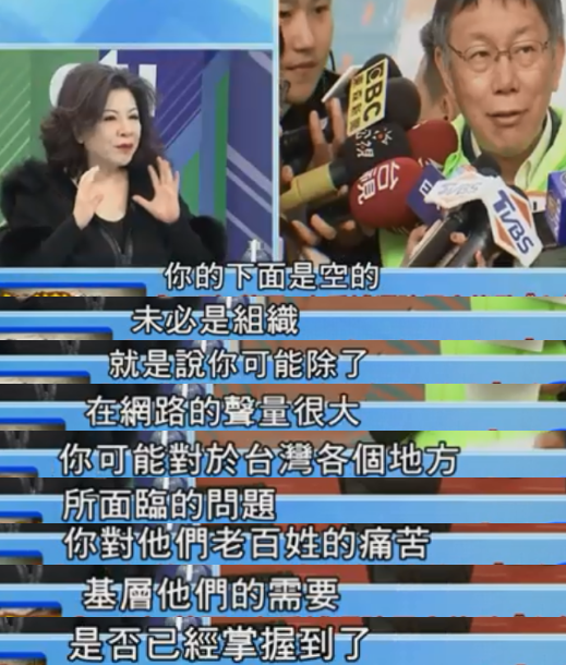 為什么陳思宇會如此慘敗呢?一方面跟她中二版的“七傷拳”打法有關(guān);但另一方面,也顯示了柯文哲戰(zhàn)力上的弱點(diǎn)和“死穴”——欠缺基層組織。這不是撩叔說的,這是柯文哲自我分析。