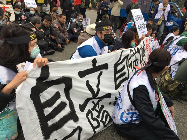 勞工在蔡英文辦公室前抗議。(圖片來源:臺灣《聯合報》)