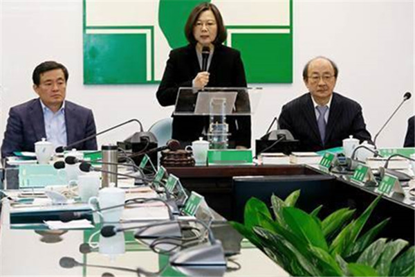 蔡英文6日在民進(jìn)黨中常會(huì)前召開記者會(huì)。(圖片來(lái)源:臺(tái)灣《中時(shí)電子報(bào)》)