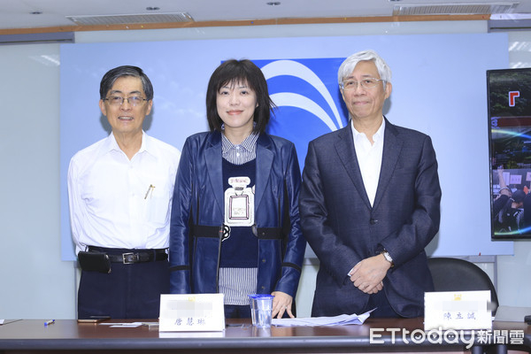 魏國彥、唐慧琳、陳立誠召開記者會批評深澳電廠通過環(huán)差。(圖片來源:臺灣“東森新聞云”)