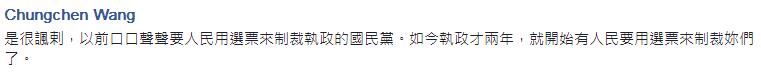 臺網(wǎng)友也清醒地提醒蔡英文“選票是國民黨的嗎?”并表示“早晚受報應”。