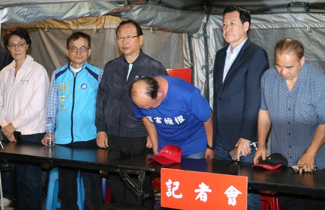抗議軍人年改行動25日爆發流血沖突,“八百壯士”副指揮官吳斯懷晚間向媒體與社會大眾鞠躬道歉。(圖片來源:臺灣《聯合報》)