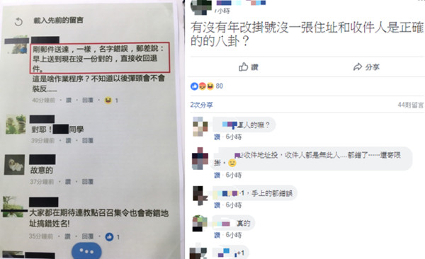 有退軍反應,通知函地址正確,但姓名非本人,或是連地址都錯誤,甚至級職也算錯,讓年金大打折扣;許多郵差也抱怨,明明到了收件地址投,但收件人都是無此人,沒一張投遞成功,錯誤率100%,“送到懷疑人生”;也有人質疑,“不知道以后彈頭會不會裝反?”