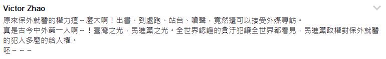 也有網友諷刺,這就是“臺灣之光”“全世界最高調的貪污犯”。