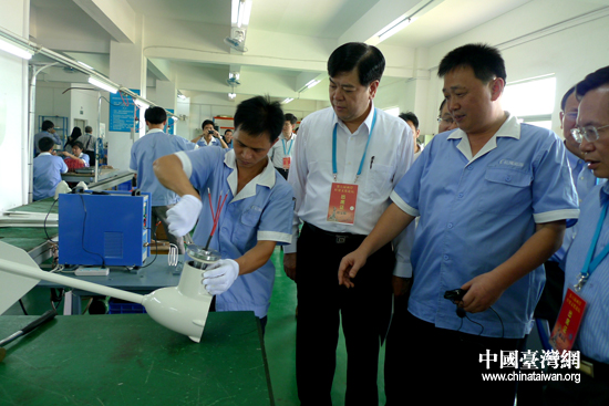 參加第六屆兩岸經貿文化論壇的新能源組參訪團代表9日來到廣州紅鷹能源科技有限公司參訪,兩岸業者就小型風力發電項目上的合作討論熱烈,不少臺灣代表表示:兩岸在小型風力發電項目上的合作,有資源、有技術、有市場,前景相當光明。
